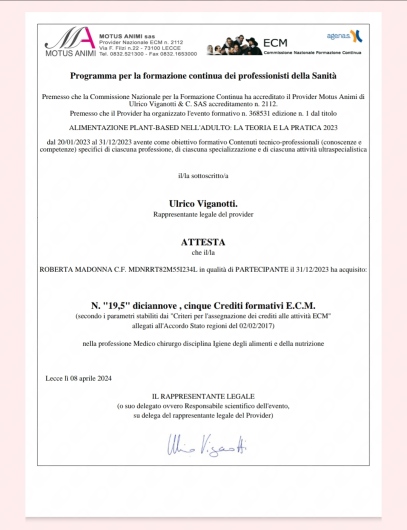 Sono la Dott.ssa Roberta Madonna, Biologo Nutrizionista ad indirizzo Integrato, Funzionale e Sistemico; sono Farmacista e sono Specialista in Biochimica Clinica. Dal 2008 mi occupo di Nutrizione Umana Fisiopatologica, Dietetica Clinica, Nutrizione Sportiva ed Educazione Alimentare. Sono perfezionata in Nutrizione applicata alle Patologie ed in Terapie Chetogene, in Nutrizione per lo Sport ed in Nutrizione Funzionale, nonché Fisionutrizione e Nutrizione Anti-Aging. Sono appassionata di Epigenetica, Nutraceutica e di Microbiota Umano. Nel 2023 ho ricevuto l'incarico di Docente presso il Corso di Perfezionamento Universitario Nutriketo Unisa - Diete e Terapie Chetogeniche: Integratori e Nutraceutici - Università di Salerno e sempre nello stesso anno ho rivestito il ruolo di Relatore al I Congresso NUSA 08-09-10 Marzo 2023 con una comunicazione dal titolo - Il ruolo della Berberina nell'attenuare la disfunzione mitocondriale -. Ad Ottobre del 2023 sono stata incaricata di rivestire il Ruolo di Relatore per il Congresso SIALE 2023, 16-20 Ottobre Lima, in Perù, con una comunicazione dal titolo "Positive Effects of Cinnamon on the Metabolic Syndrome". Da anni collaboro con diversi Medici Specialisti sul territorio campano e non, nel seguire e trattare pazienti complessi. Nella mia pratica ambulatoriale mi interesso di molteplici problematiche riguardanti la sfera della nutrizione umana, con finalità di prevenzione primaria, secondaria e terziaria, quali ad esempio, sovrappeso, obesità, lipedema, patologie diagnosticate di tipo dismetabolico, insulino-resistenza, PCOS, endometriosi, nonché disturbi della sfera endocrinologica, patologie diagnosticate su base infiammatoria ed autoimmune (con anche applicazione dei principi Paleo, Medoto Apollo), allergie, intolleranze (comprese SNAS ed Istamina) e sensibilità alimentari, disturbi gastroenterici funzionali diagnosticati, magrezze eccessive, disturbi del comportamento alimentare. Seguo donne in preparazione per PMA, in gravidanza, allattamento e menopausa, nonchè soggetti sportivi, dagli amatoriali agli agonisti, in tutte le discipline. Elaboro Piani Alimentari Personalizzati, che rispecchino le esigenze nutrizionali e gli obiettivi di ciascun paziente e rivolti a tutte le fasce di età e per ogni tipologia di pazienti, inclusi i vegetariani ed i vegani. Sono, altresì, perfezionata in dieta mediterranea, dieta mima digiuno, digiuno